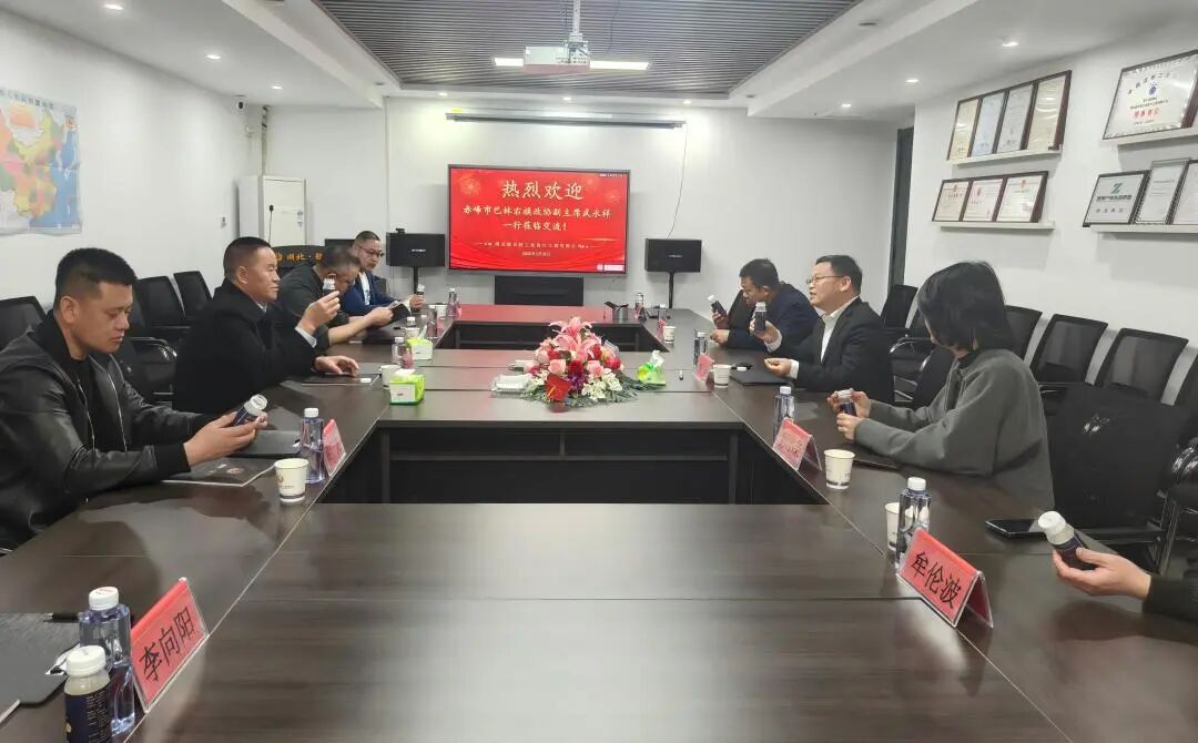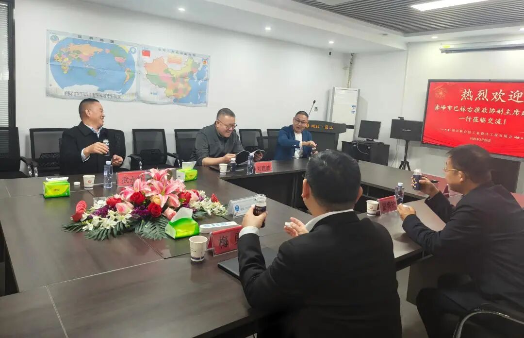 3月26日,内蒙古赤峰市巴林右旗政协副主席武永祥、巴林右旗国有资本运营公司总经理刘建波、湖北省中小企业协会秘书长雷焕松、副会长江南美装饰集团董事长王畴广、副秘书长彭小荣、办公室副主任范天龙一行,莅临我司开展交流,我司董事长梅勇全程热情接待。