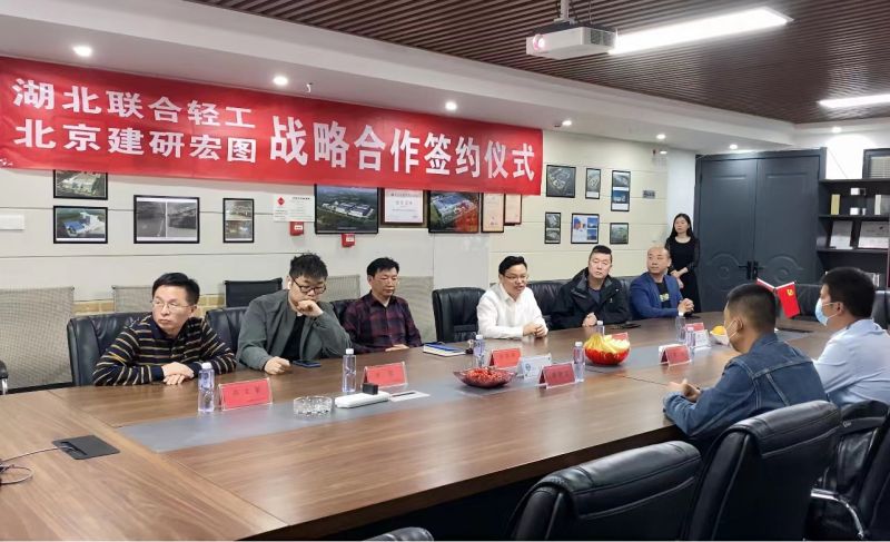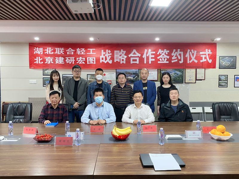 湖北联合轻工业设计工程有限公司董事长梅勇,副总经理刘君和、王涤、成俊,机电总工高文基,给排水总工石天成;北京建研宏图咨询有限公司副总经理曾凌,项目经理席晓龙等出席了本次签约仪式。