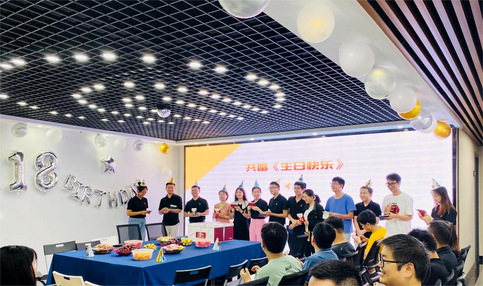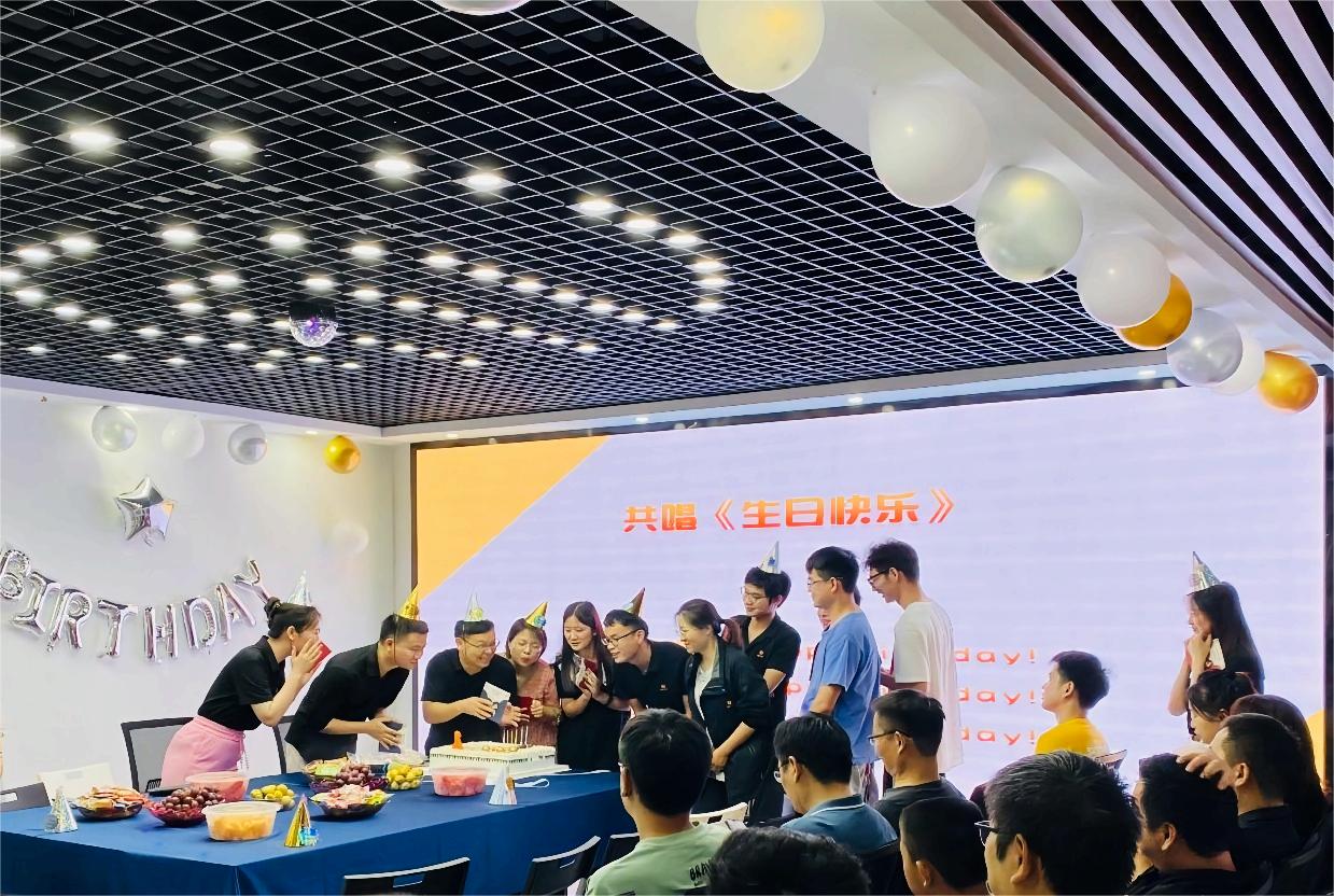 全体员工齐唱生日歌为寿星们送祝福,被热情包围的寿星们,