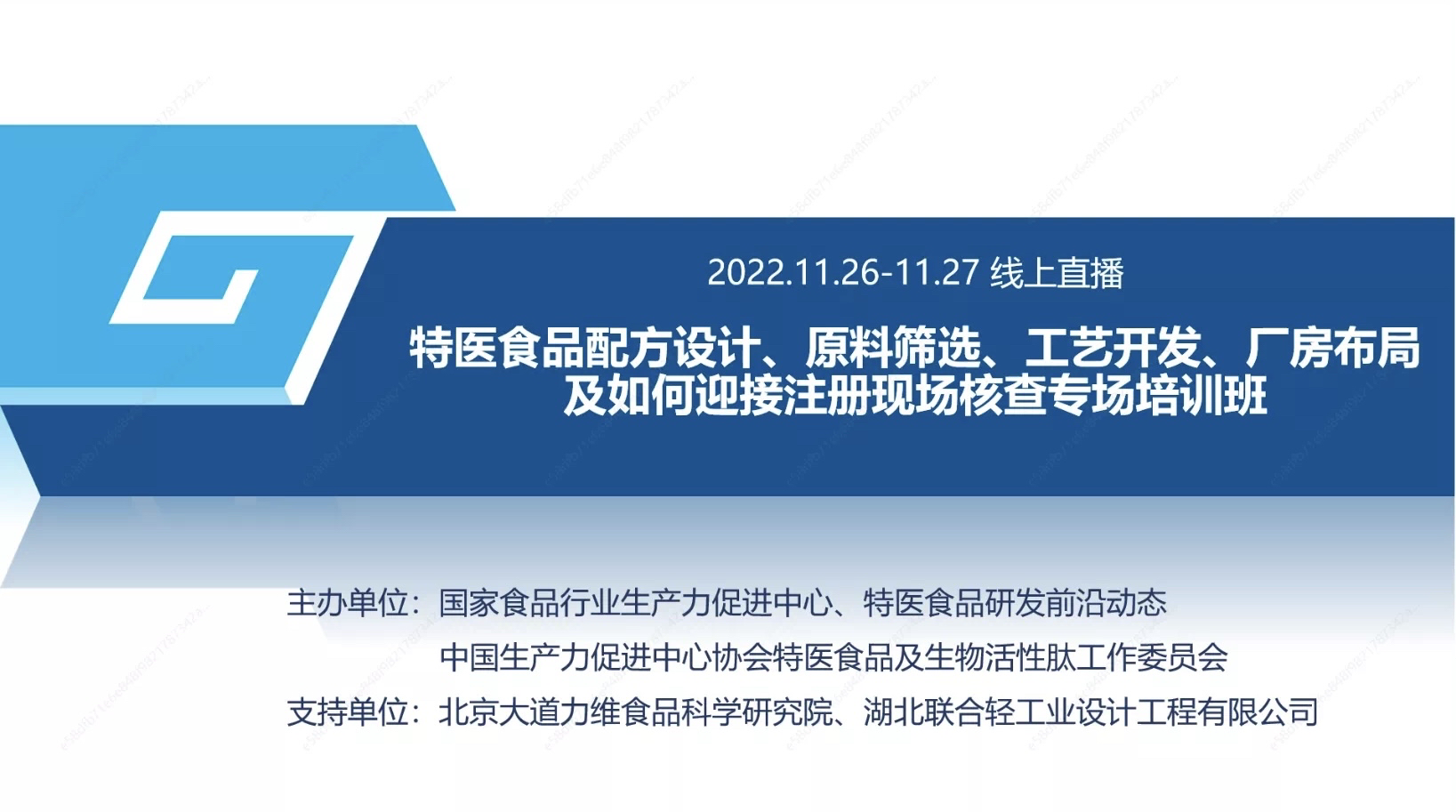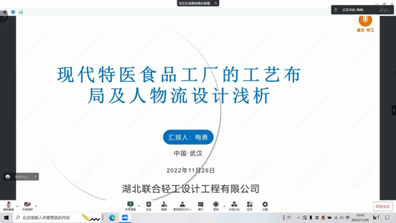 11月26日、27日,湖北联合轻工业工程设计有限公司受邀参与2022特医食品配方设计、原料筛选、工艺开发、厂房布局及如何迎接注册现场核查专场培训班”线上培训班。
