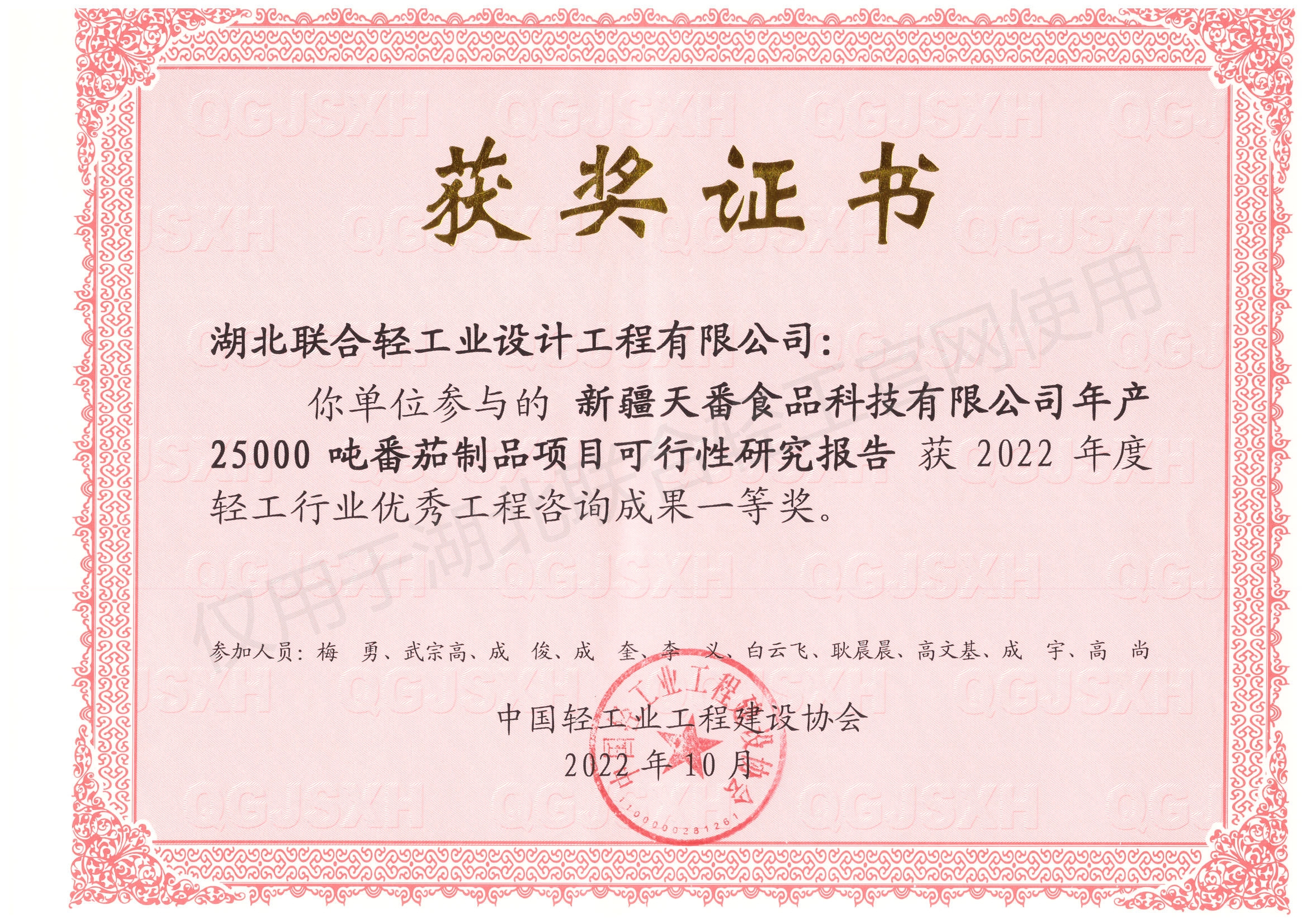由中国轻工业工程建设协会组织、代表中国轻工业咨询设计最高水平的优秀工程咨询成果年度评奖结果出炉,经评审专家层层筛选,通过初审、终审等环节,公司申报的2个代表性项目,在众多参选项目中脱颖而出,“新疆天番食品科技有限公司年产25000吨番茄制品项目可行性研究报告”获一等奖、“河南大咖食品有限公司产业园项目可行评性研究报告”获三等奖。