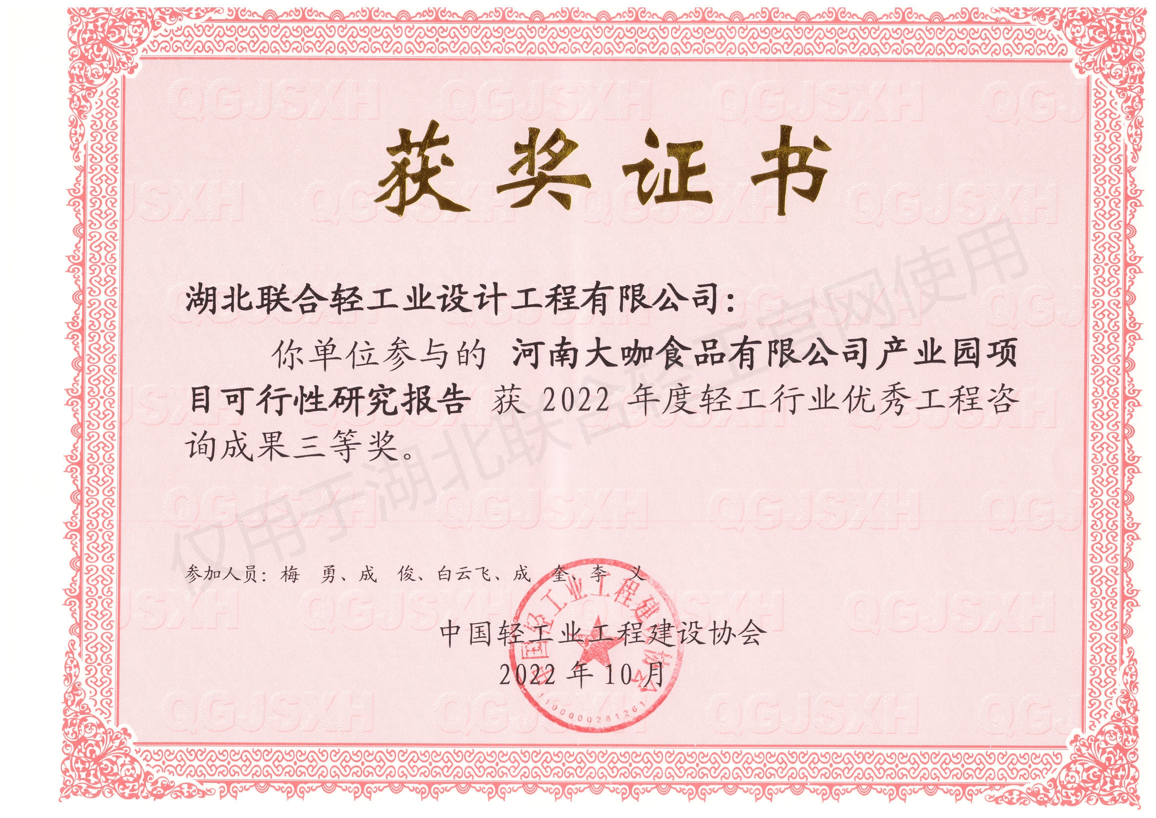 喜讯 | 中国轻工业工程建设协会2022年度轻工行业优秀工程咨询成果揭晓,湖北轻工喜获一、三等奖