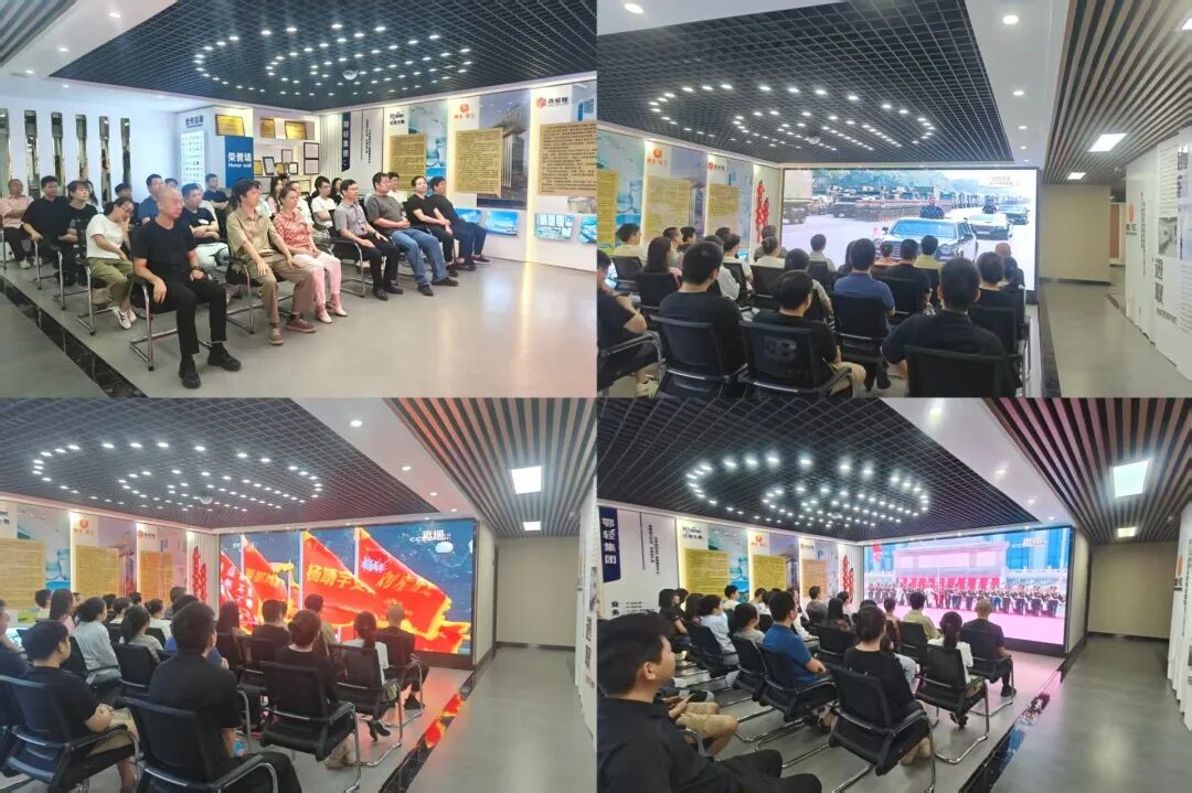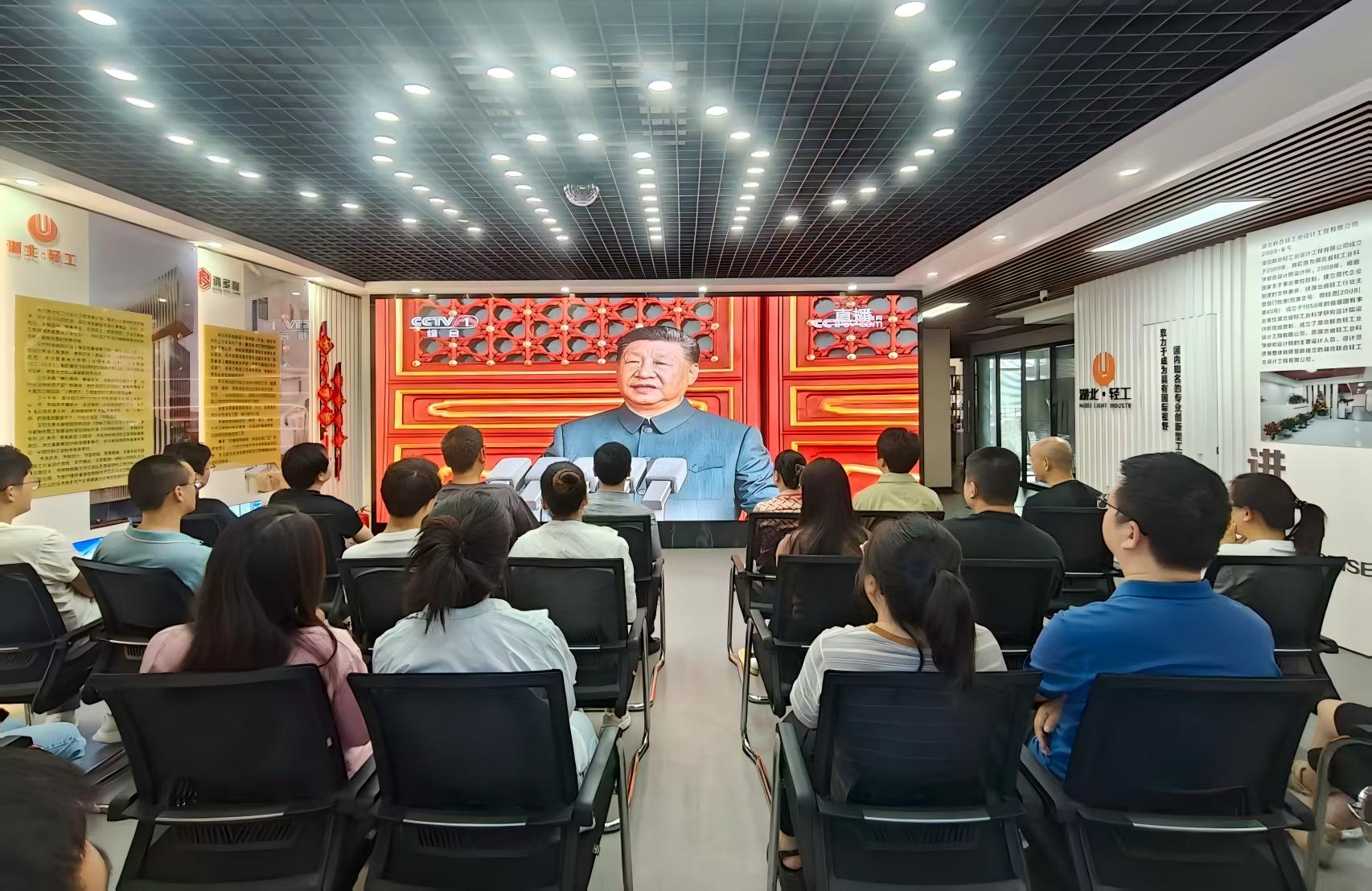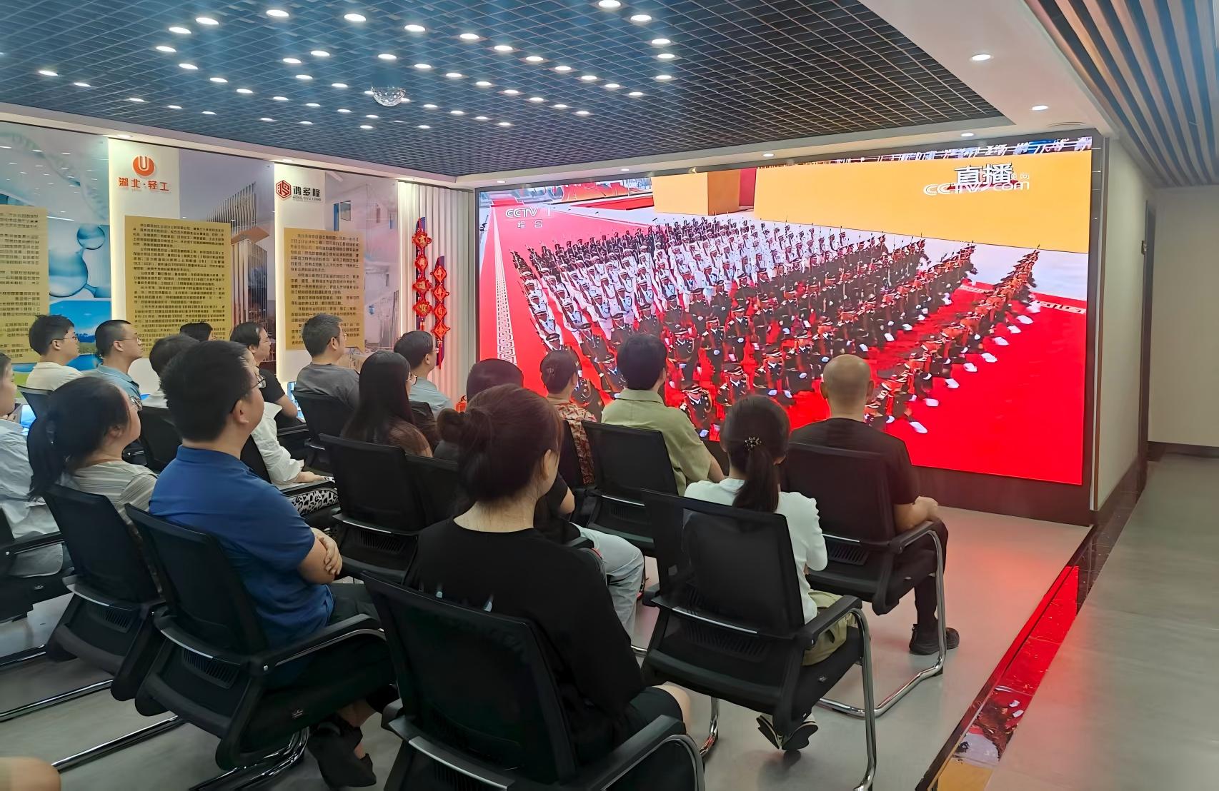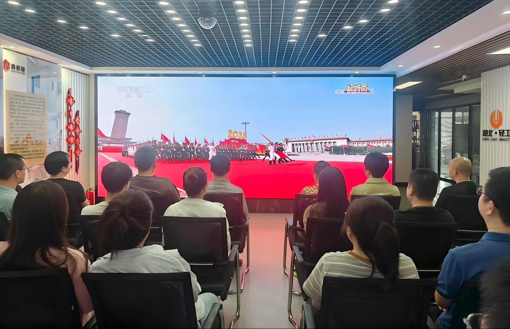 9月3日上午9时,纪念中国人民抗日战争暨世界反法西斯战争胜利80周年大会在北京天安门广场隆重举行,26国领导人齐聚天安门城楼,共襄这一举世瞩目的盛举。为弘扬爱国主义精神,铭记历史、珍爱和平,湖北联合轻工组织全体员工集体观看了此次阅兵盛典的直播,一同感受祖国的强大与繁荣。